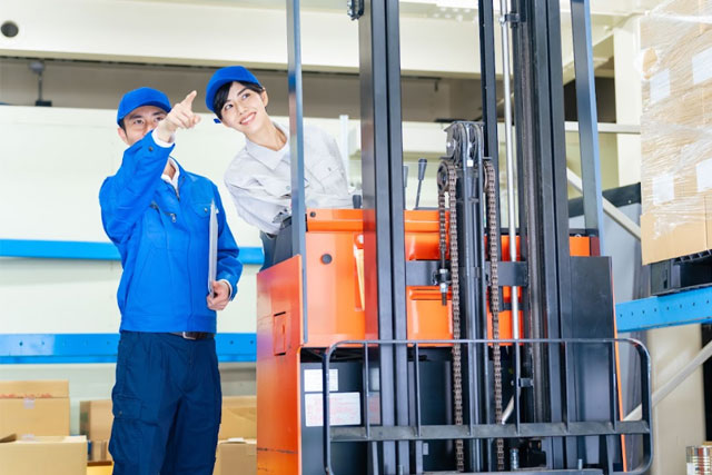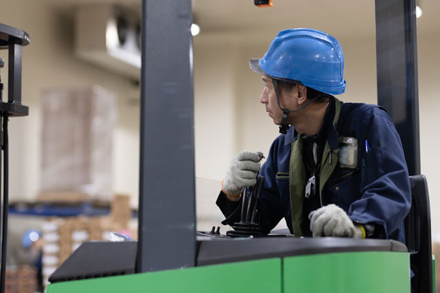 冷蔵・冷凍庫内でのリーチフォークリフト作業