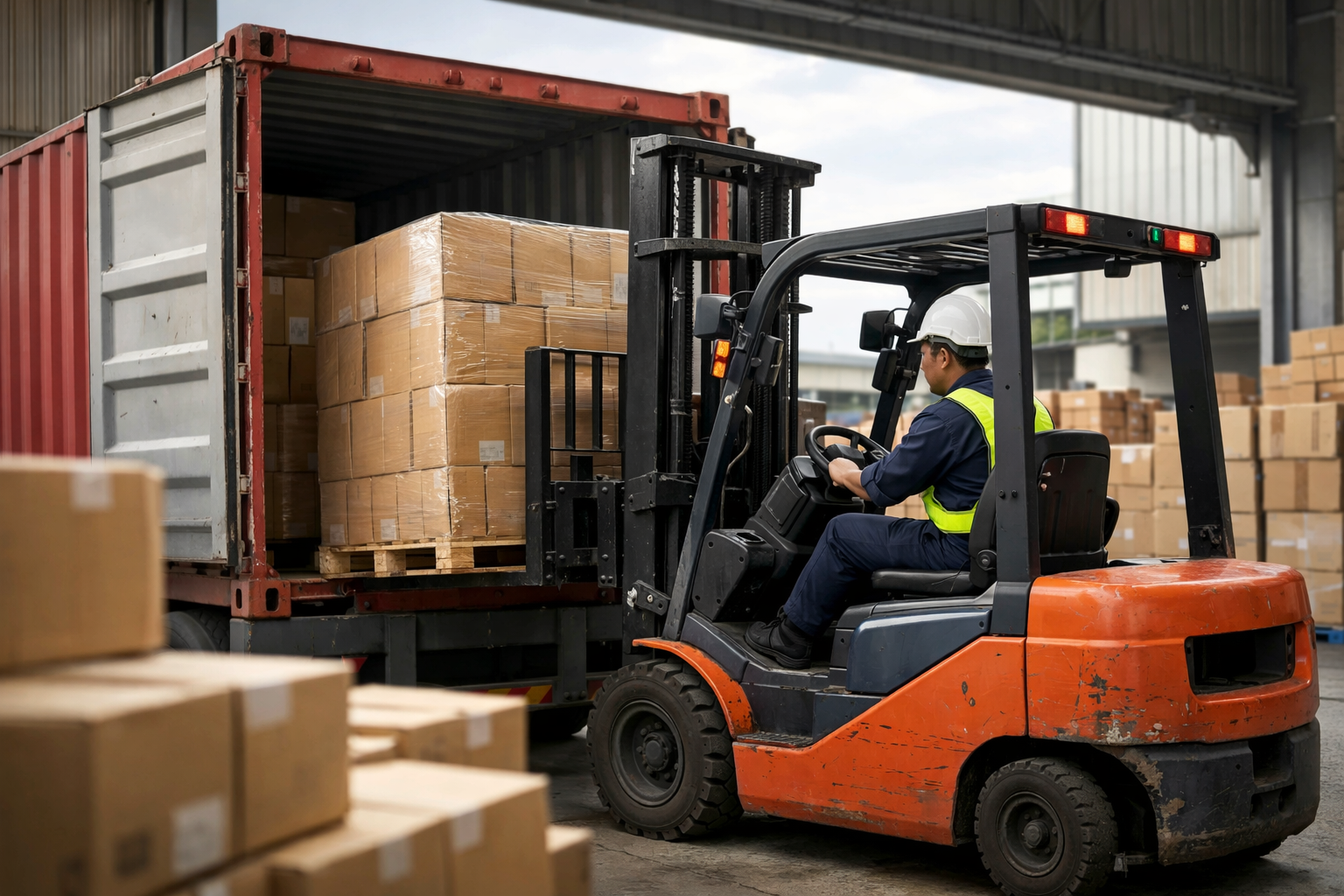 コンテナで運ばれてきた荷物を、